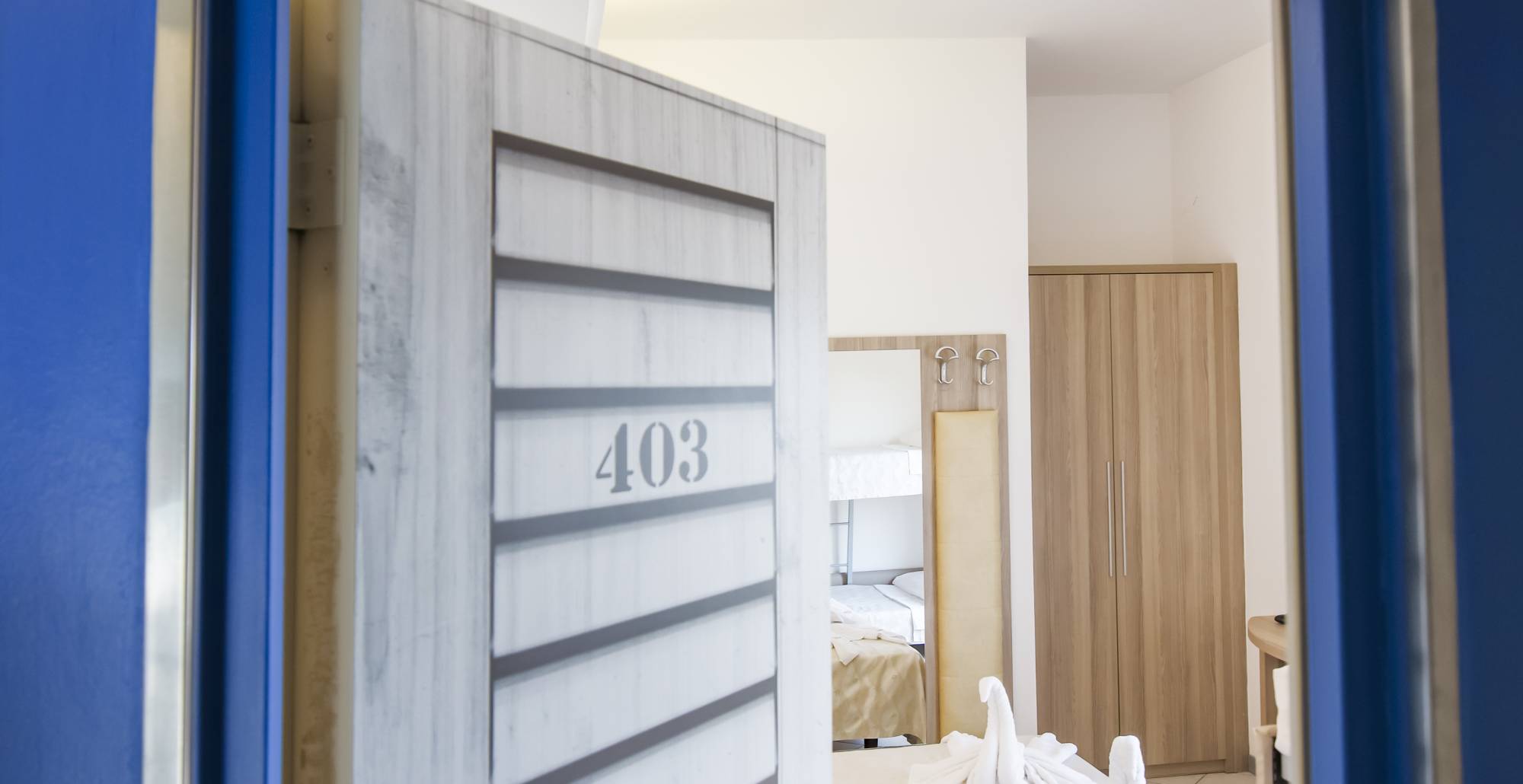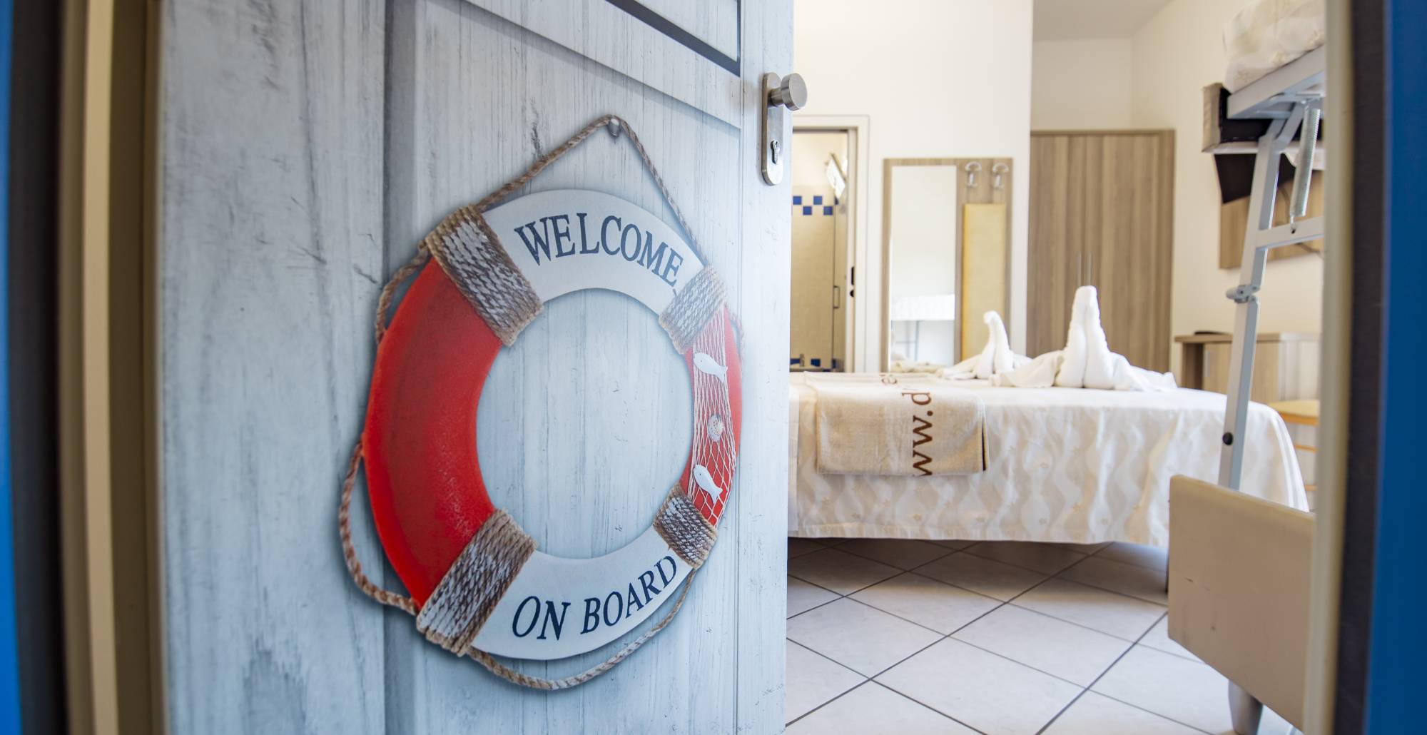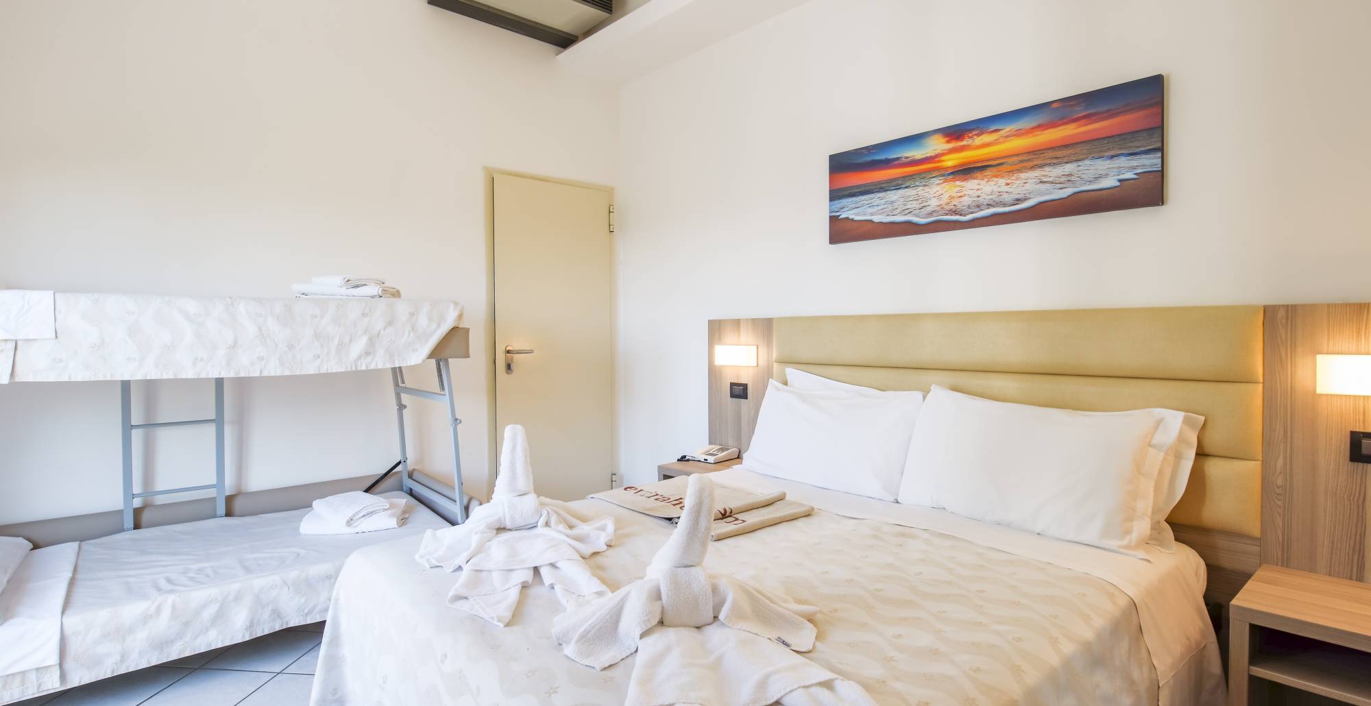 Camera doppia, tripla o quadrupla con balcone fronte mare. La camere sono le più grandi e sono collocate nella struttura di fronte all’hotel.
